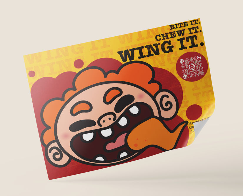 Wing It is a wing restaurant my class was assigned to do a full rebrand of their company. We were assigned to design their new logo, packaging, app, and print ad.